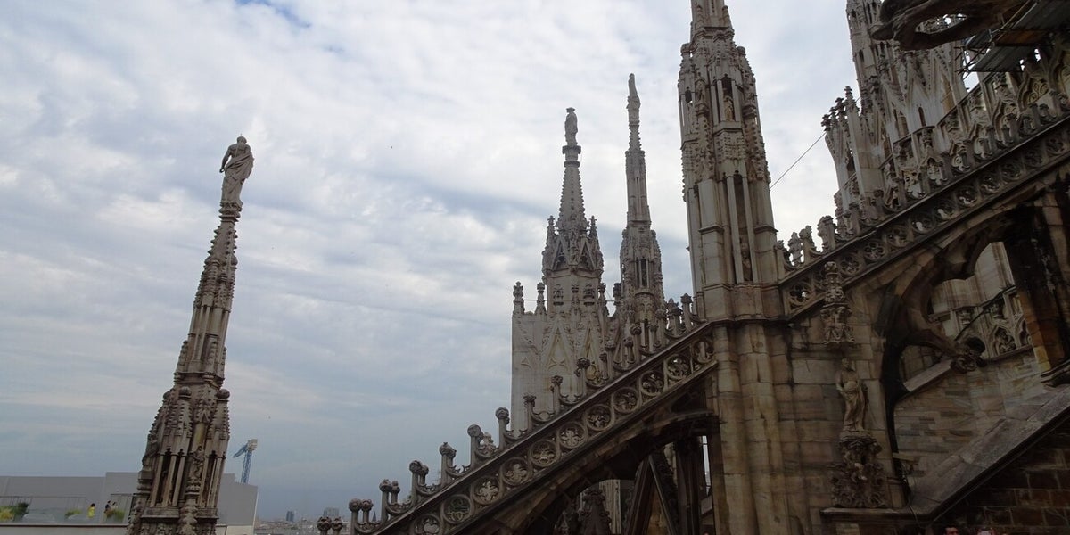 La dernière journée a été consacrée à visiter le Duomo de Milan. La cathédrale est d'architecture gothique en marbre. Il s'agit de l'une des plus grandes églises en Europe. Nous avons acheté nos billets, ce qui nous a permis d'accéder à l'intérieur de la cathédrale, et avoir accès, par ascenseur, au toit et aux terrasses.