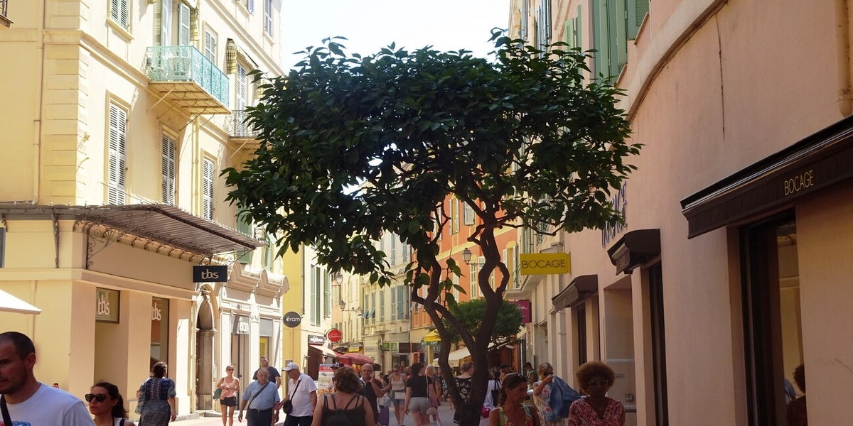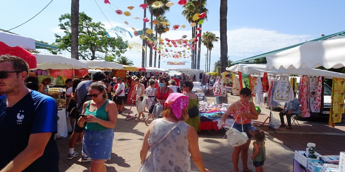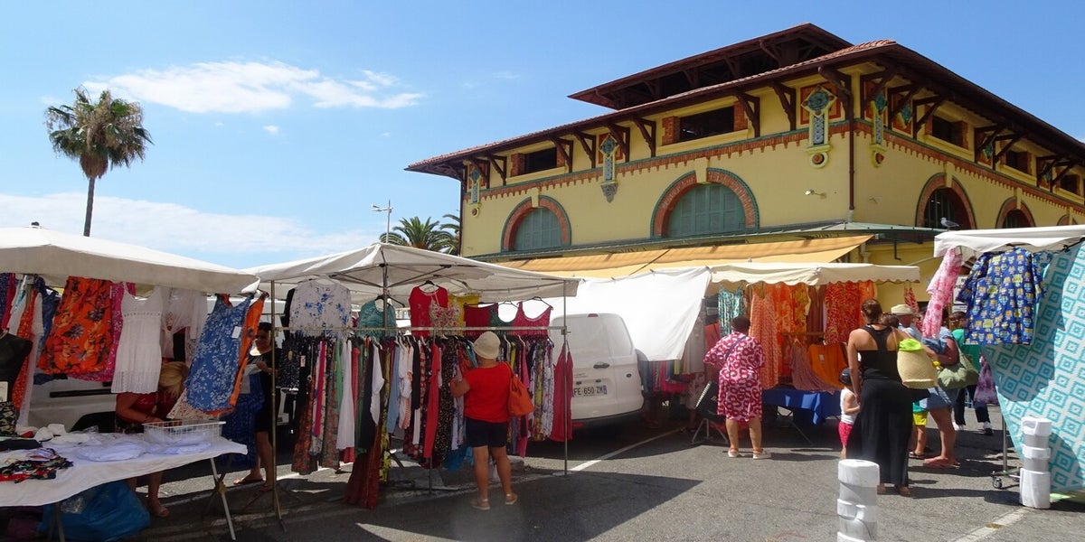 Samedi matin, journée sans voiture. Nous avons pris la ligne d'autobus 100 qui circule sur la côte entre Nice et Menton. Nous nous dirigeons vers la magnifique capitale du citron, Menton. Sa réputation vient de sa célébration du citron en février. La ville de Menton se trouve entre Monaco et l'Italie. Elle est entourée de montagnes élevées et possède un climat subtropical. Le samedi matin, des forains prennent possession de la place Fornari pour vendre des vêtements et divers accessoires. C'est une visite incontournable. .